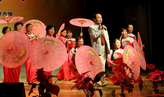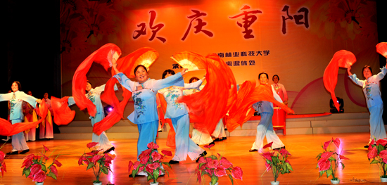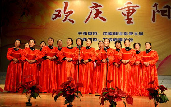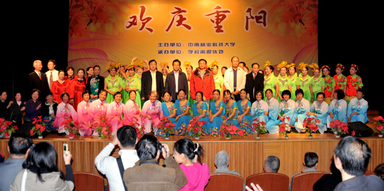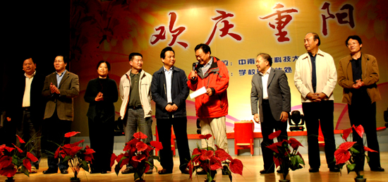 2010年10月15日下午,学校在音乐厅举办了一场热闹非凡的“庆重阳文艺演出”。学校党委书记章怀云、校长周先雁、党委副书记曾思齐、副校长秦立春、副校级督导田毅和副校级督导蔡玉梅以及学校各部门单位的领导观看了演出,党委书记章怀云代表学校党委和行政向离退休老同志致以节日诚挚的问候、表达了对老同志的深切关怀之意,同时衷心感谢老同志对学校发展建设和稳定工作的关心、理解和支持,并希望老同志一如既往,发挥余热,老有所为,老有所乐,健康长寿。