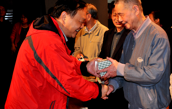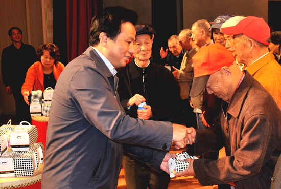演出中还精心安排了为70岁、80岁和90岁整生日的老同志集体祝寿。党委书记章怀云、校长周先雁等领导在生日快乐歌声中为寿星们发生日蛋糕。老寿星们紧紧握住领导的手,笑容满面,大家深深感到:这么多领导从百忙中抽出时间来为我们祝福是多么的温暖啊!有些寿星感动得热泪盈眶,激动得说不出话来。