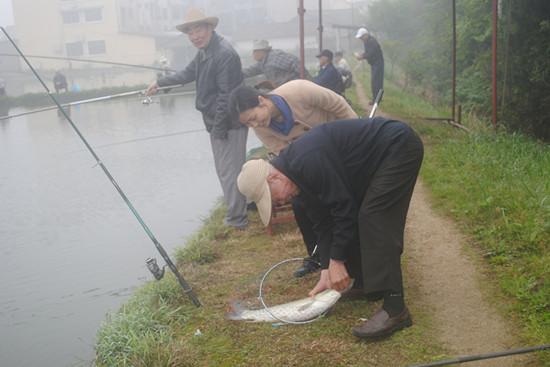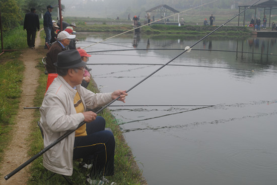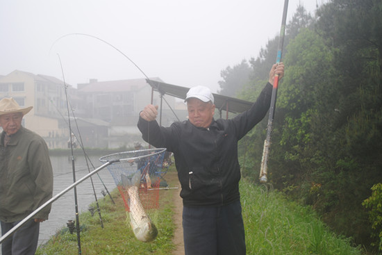 午餐时,老同志兴奋相互切磋钓艺,在一片愉悦的气氛中,大家举杯庆祝。有的老同志觉得没达到自己理想成绩,吃完饭又忙着去鱼塘边抛杆。下午一点半,大家乐呵呵的收杆称鱼,少数没钓到的也能分享到战利品,大家自得其乐,钓的是鱼,收获的是好心情。