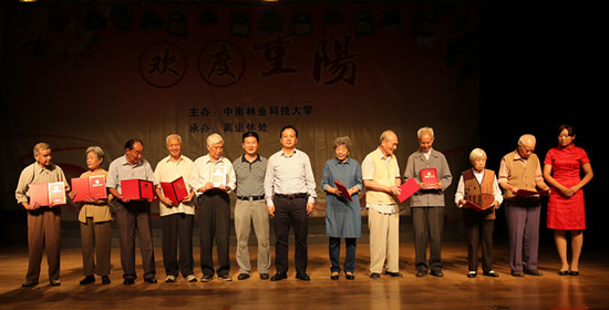 周先雁校长在联欢会上致辞,向老同志致以节日的问候和美好的祝福,向为学校的改革、发展、稳定做出的贡献的老同志致以衷心的感谢和崇高的敬意,并通报了学校发展现状和喜讯;校党委书记曾思齐现场为老同志献歌,祝老同志身体健康,家庭幸福。为弘扬主旋律,传递正能量,倡导健康的生活方式,离退休处首次组织评选出了18位“长寿之星”,39位“健康之星”,28位“和谐之星”,36位“有为之星”,63对“金婚之星”,离退休处处长唐鼐宣读了表彰决定,学校领导为他们颁发奖品和送上祝福,还为过整70、80、90生日的寿星送蛋糕集体祝寿。前来参加联欢会的老同志都领到了离退休处为他们准备的纪念品。