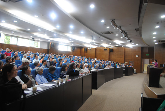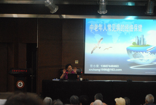 常小荣教授讲座的主题是《中老年常见疾病的穴位保健》,她通过幻灯片、实例相结合,并以自己身体为实践对象,手把手、图文并茂地讲述各种经络、穴位的作用。在长达两个多小时的讲述中,老同志边听、边笔记、边实践。报告厅里始终充满了认真学习的气氛。课后还有许多老同志围拢在常教授身边咨询疑惑,索取讲课资料,久久不愿离开。