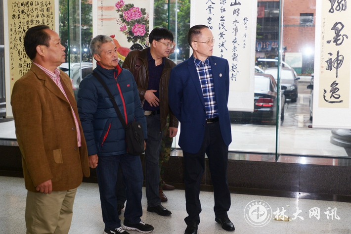 在全国上下喜迎党的十九大召开之际,由学校离退休工作处主办,学校老年书画协会承办的英国威廉希尔公司“喜迎党的十九大书画展”十七日上午在学校行政楼一楼大厅开幕。学校党委书记赵运林、副书记秦立春等在离退休工作处以及老年书画协会相关负责人的陪同下,兴致勃勃观看了展览,并对此次展览和付出辛勤劳动的老同志们给予高度评价。