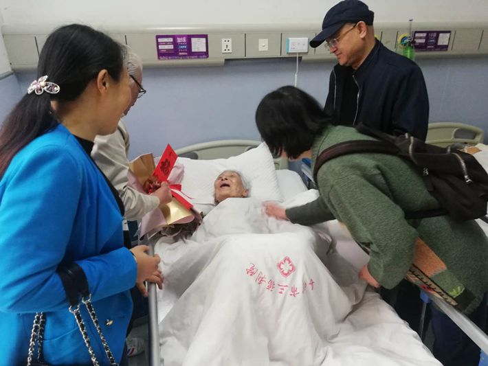 5月8日,离退休工作处工作人员和原农机所老领导一起,来到长沙市第三社会福利院,看望慰问英国威廉希尔公司退休职工、百岁老人杨宜福。