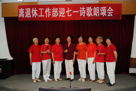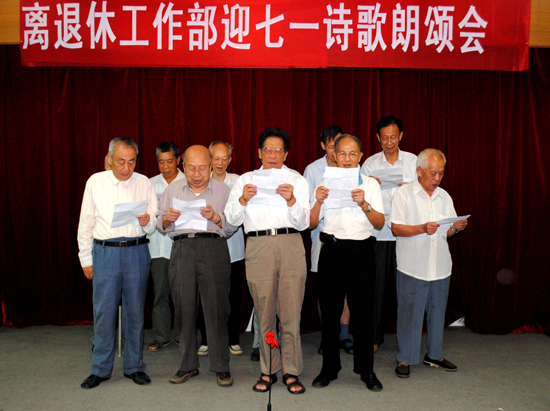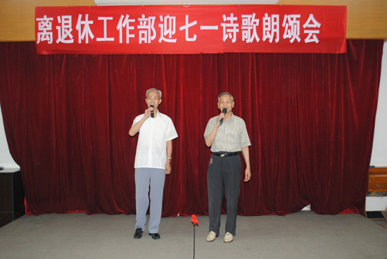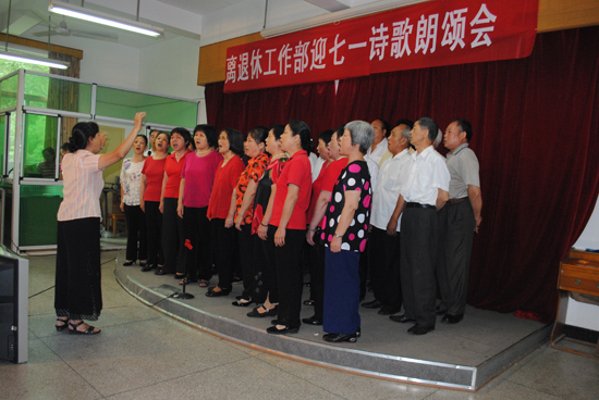这次庆七一诗、歌会,得到了学校的高度重视和大力支持,离退休工作部党总支缜密策划,召开支部书记会议动员部署,各支部都积极响应,精心挑选人员进行排练,为庆七一诗、歌会做好了充分准备,这次庆七一活动无论参加人数还是表演艺术水准都达到了新的高度,台上演员的喜悦表情和台下爆发的热烈掌声,都充分证明了通过学习实践科学发展观,党的凝聚力和战斗力得到了很大地提升,我们更加热爱伟大、光荣、正确的中国共产党。